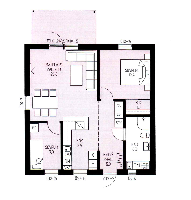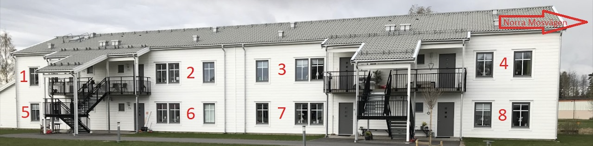 Området består av tre energieffektiva hus med åtta lägenheter vardera.