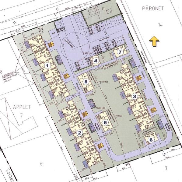Området består av tre energieffektiva hus med åtta lägenheter vardera.